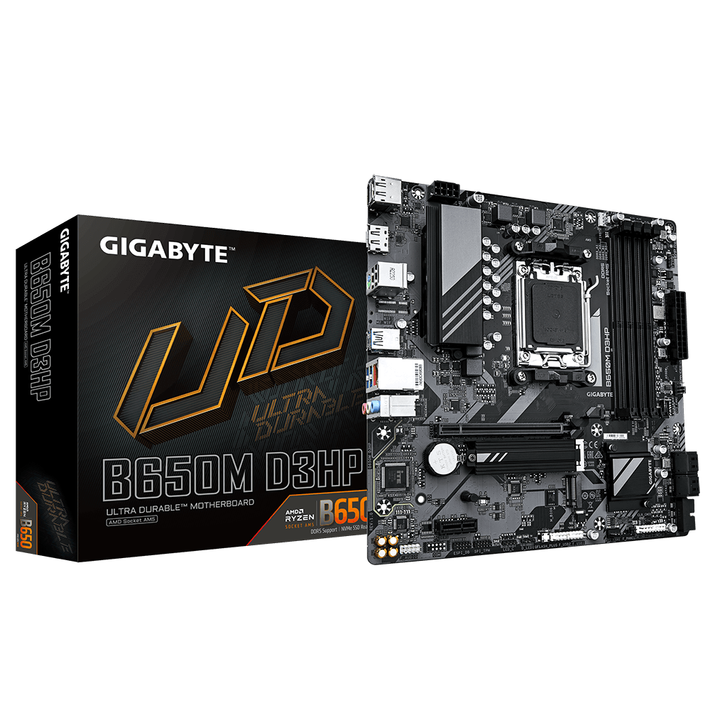 GIGABYTE MOTHER B650M-D3HP AMD RYZEN 7000, 8000,9000 AM5 128GB 4DRR5 1HDMI 2DP , USB C, USB 3.2, RED 2.5 GBE, 2 M.2 NVME, 4 SATA